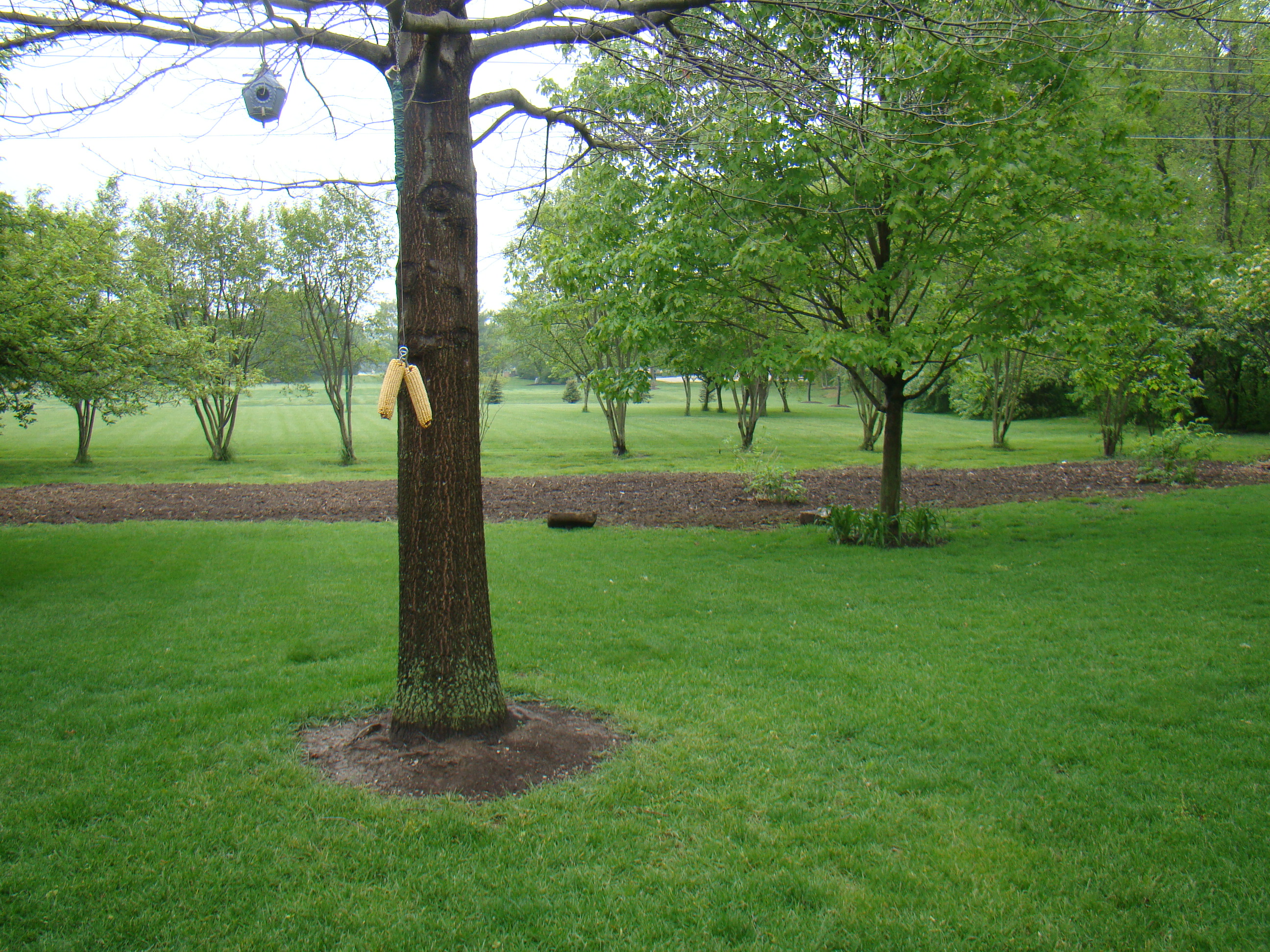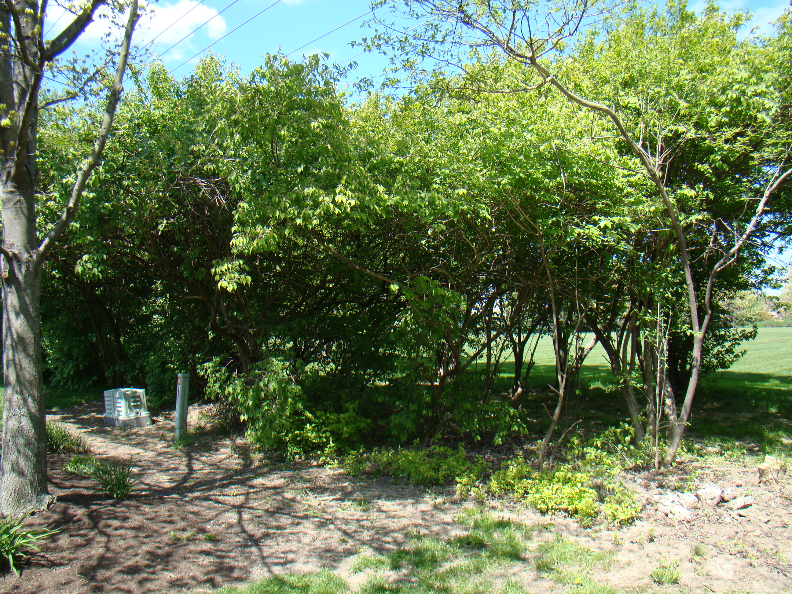 The honeysuckle eradication and fence row clean up had great progress yesterday. We rented a commercial rototiller and went to work trying to mix up and level out some of the wonderful soil that’s been in hiding under those invasive shrub-trees. Having long served as my 100′ long ‘compost pile’ (read that: dumping ground), many treasures were found: a stray tennis ball, numerous plastic plant name tags and even a buried Time Warner cable which is now in TWO pieces. Darn thing! Thankfully, no neighbors were affected as it was an old wire laid who knows how many years ago. I refuse to credit the rototiller-ing to my back that went out later yesterday…… Here is what we look like now. Our back yard property line lies somewhere in the freshly turned soil but now it looks like it goes on forever!